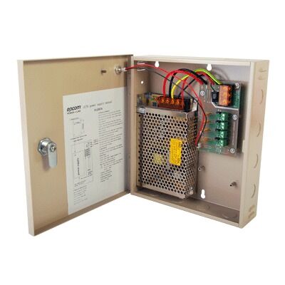 Fuente de alimentación para cámaras de CCTV en 12 Vcc, 5A, con 4 salidasCaracterísticas :• Entrada: 100-240 Vca.• Fusible térmico PTC .• LED indicador en cada salida.• Puede instalarse en pared.• Salida de 12 Vcc, 5 A.• 4 salidas, con 1.25 A por circuito.• Dimensiones: 255 x 218 x 62 mm. – 1 Año de Garantía