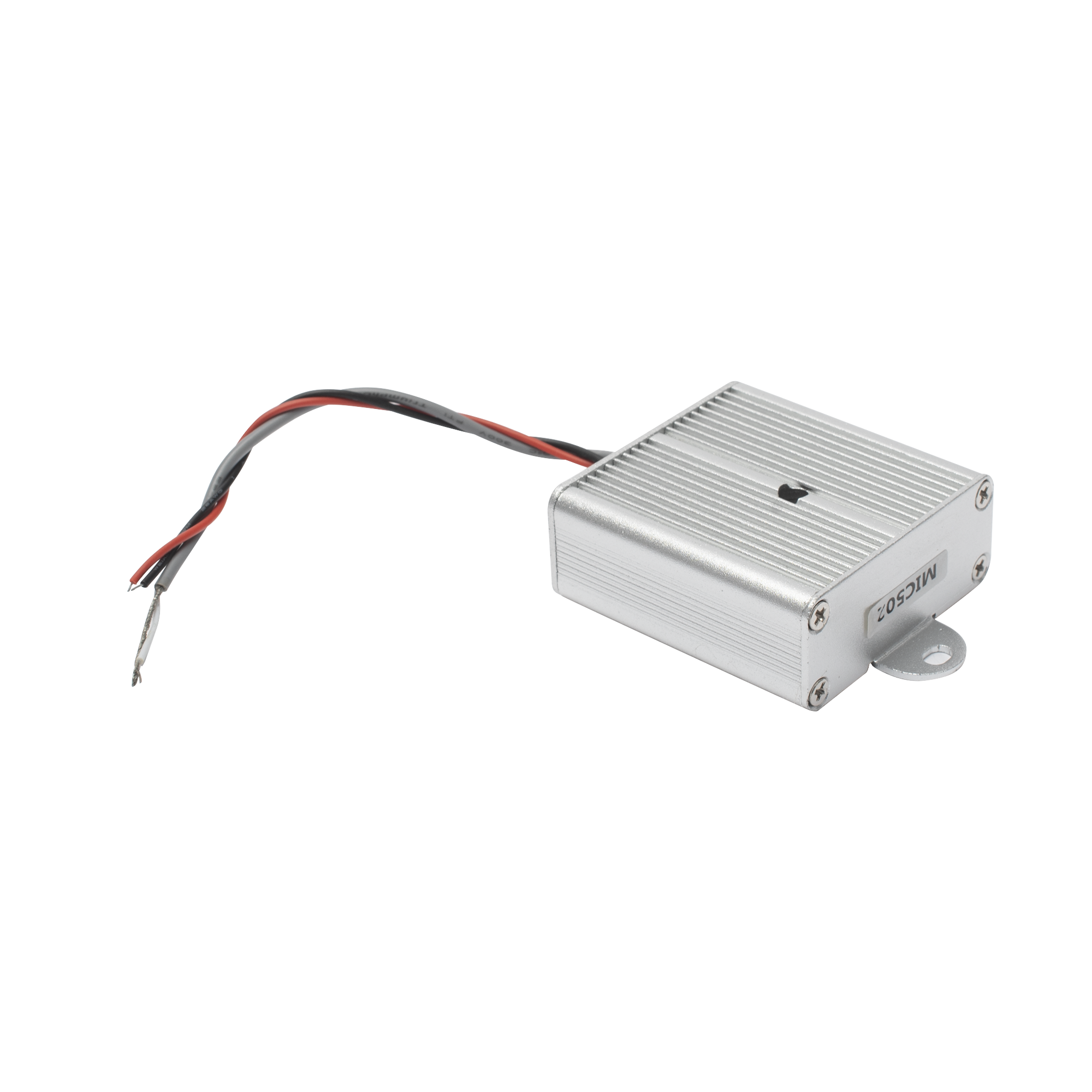 MIC-502 Micrófono omnidireccional, tipo cuadro, a prueba de explosión, con distancia de recepción de 10 – 100 m cuadrados Los micrófonos de la serie MIC son de alta fidelidad con cancelación de ruido. Con ajuste automático de nivel de entrada. Se aplican en varios lugares para el control de audio oculto, en monitoreo de audio tales como bancos, escuelas, prisiones, hospitales, mercados, fábricas y sistemas de reunión. Pueden incorporarse en la pared, en el techo o en equipos de CCTV. Características Principales Micrófono de Alta Definición Chip procesador de ruido echo de Metal a prueba de explosión Circuito de protección de polaridad en la alimentación Conectores DC+RCA Cobertura: 10~100 ㎡ Recomendado utilizar conector: PCON3 Nota: Se recomienda el uso de cables de audio de alta calidad como el modelo PRO-AUDIO para la mejor calidad de sonido. Características Físicas y Eléctricas Especificaciones Técnicas Impedancia: 600 ohms Frecuencia: 200 ~ 10Khz Alimentación: 9 ~ 14 Vcc Dimensiones: 45*45*19mm Características Destacadas Uso Recomendado Diseñado para capturar el audio de un área específica Funciona muy bien en oficinas, cajas registradoras, almacenes, consultorios, etc. Conecta el Micrófono de alta definición con tecnología de cancelación de ruido a tu grabador (Tu equipo debe de contar con canales de audio)
